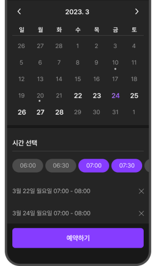 걱정하지 마세요. 피벗에서는 전문가에게 연락할 필요 없이 직접 전문가의 일정을 확인하고 수업을 예약할 수 있으며, 취소까지 몇 번의 터치 만으로 가능합니다.이제, 피벗에서 수업 일정 때문에 스트레스 받지 마세요.